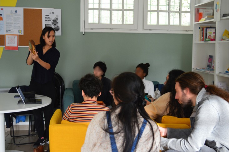 La configuration de l’espace a permis des échanges faciles et une proximité bienveillante entre la prof de Kalimba et les élèves, ce qui a facilité l’immersion musicale : un bel espace change tout pour l’implication des jeunes.
