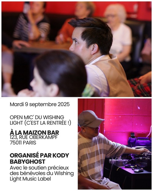 La scène ouverte, ou "Open Mic", est un espace d'expression libre et créative où chaque participant peut partager son talent et son univers artistique. Organisé par Kody BABYGHOST et le Wishing Light Music Label, c'est l'occasion de rencontrer d'autres artistes, échanger des idées et des inspirations, et peut-être même, créer des collaborations futures.