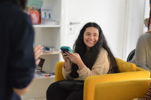 La configuration de l’espace a permis des échanges faciles et une proximité bienveillante entre la prof de Kalimba et les élèves, ce qui a facilité l’immersion musicale : un bel espace change tout pour l’implication des jeunes.